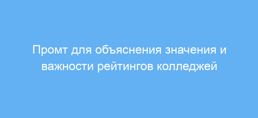 Использование данного промта позволяет быстро и просто получить ясное объяснение о рейтингах колледжей, их значении и ключевых метриках. Это экономит время на поиск и разбор сложной информации, помогает разобраться в нюансах и принимать более осознанные решения при выборе учебного заведения.