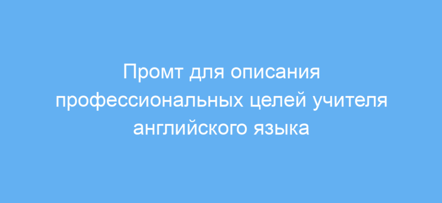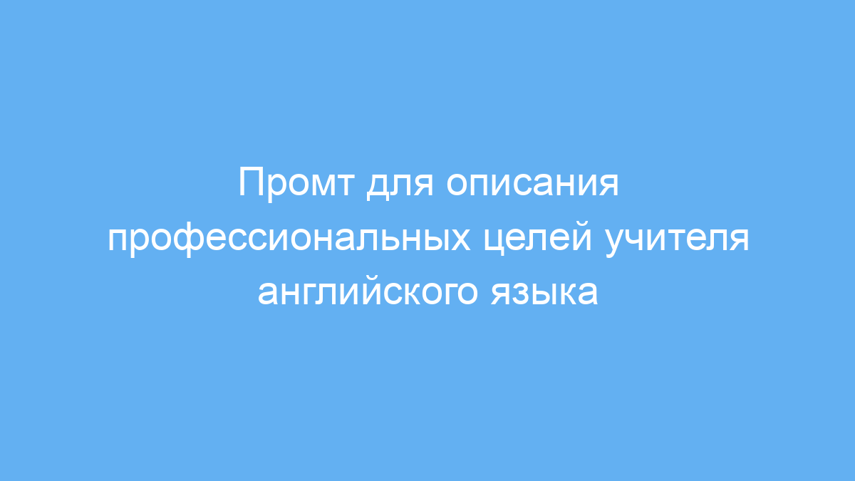 Этот промт создан для преподавателей английского языка, особенно для новичков в средней школе, а также для педагогов и методистов, которые разрабатывают планы развития и хотят чётко структурировать профессиональные цели. Его можно использовать для составления персональных планов, обсуждения с наставниками или самоанализа.