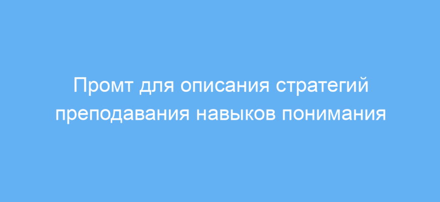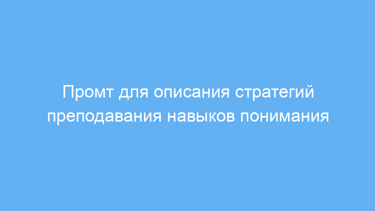 Промт работает как запрос к нейронной сети, которая формирует пять чётких и эффективных стратегий преподавания навыков чтения с пониманием. Благодаря этому можно быстро получить готовый текст, который можно адаптировать под конкретные образовательные цели.