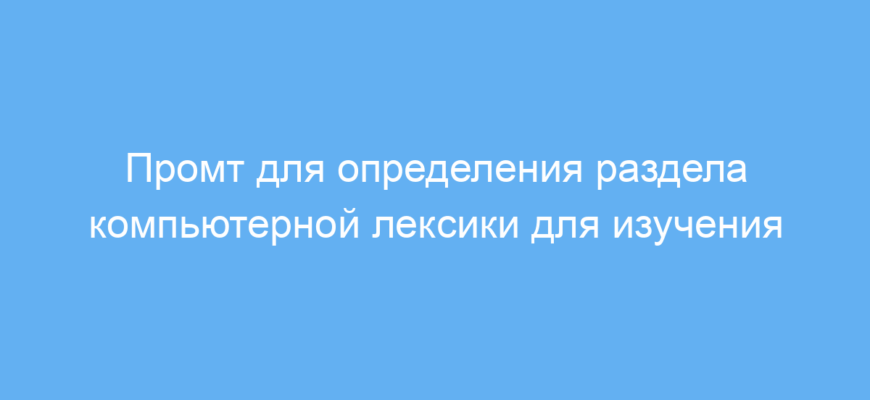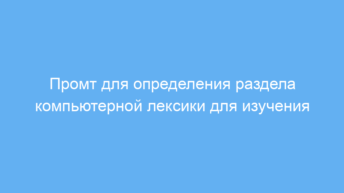 Этот промт подходит тем, кто изучает английский язык и хочет сосредоточиться на компьютерной тематике. Он помогает определить, какой именно раздел компьютерной лексики стоит освоить в зависимости от ваших целей и текущих знаний.