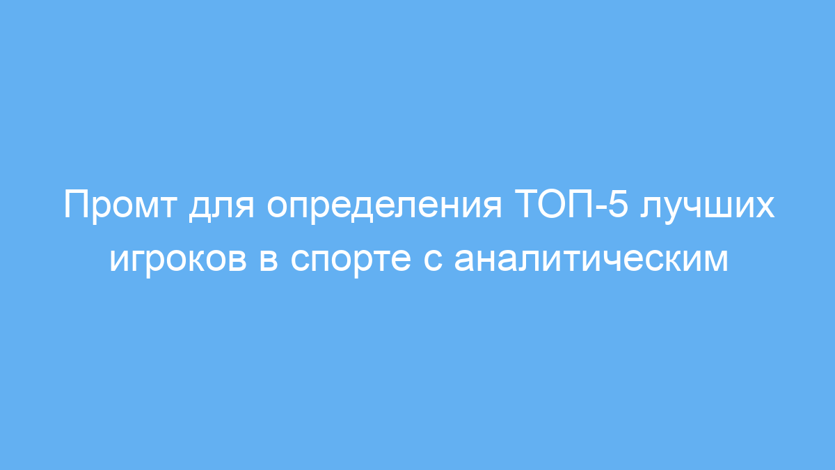 Этот промт создан для пользователей, кому важно быстро и качественно получить экспертное мнение по лучшим спортсменам в определённом виде спорта. Он полезен спортивным журналистам, блогерам, аналитикам и фанатам, которые хотят получить содержательный и аргументированный обзор самых выдающихся современных игроков.