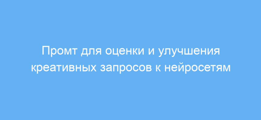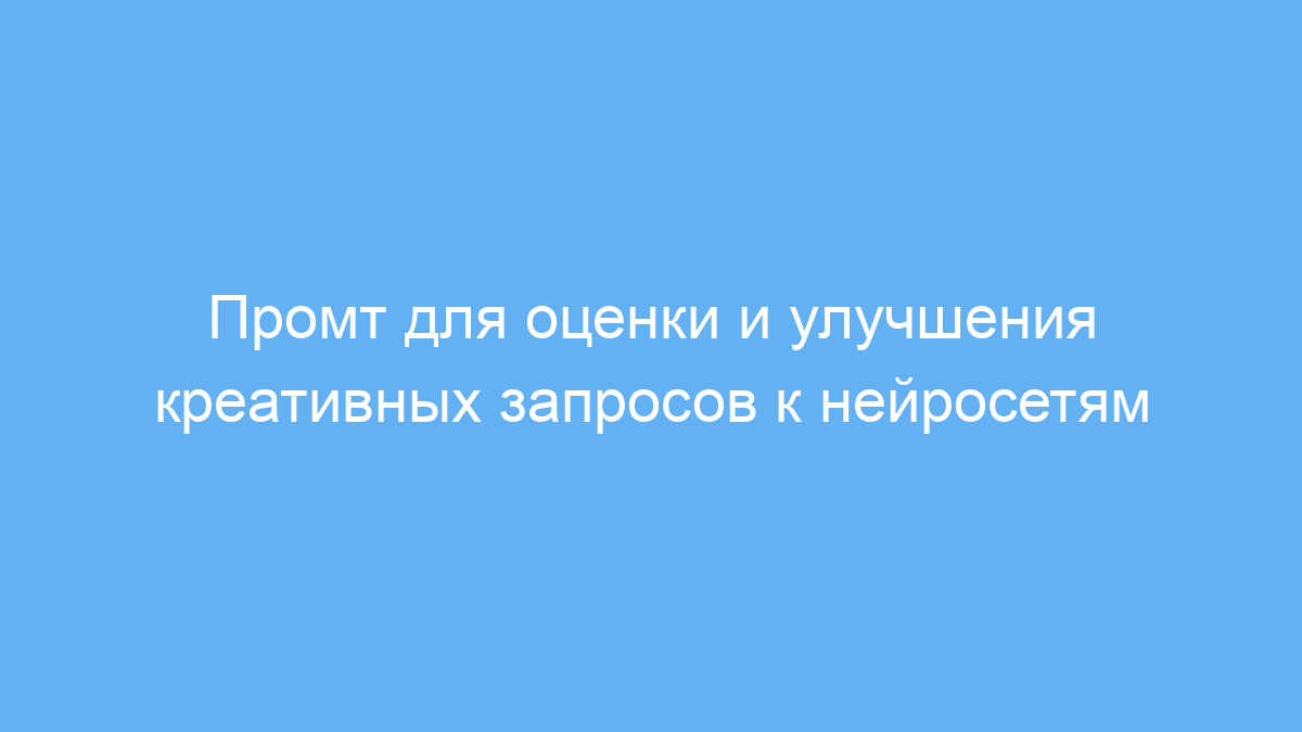Этот промт помогает быстро и эффективно оценить качество ваших текстовых запросов к нейросетям. Он выявляет слабые места, дает конструктивные рекомендации и стимулирует создавать более точные, креативные и релевантные варианты. Это сэкономит ваше время и улучшит итоговый результат при работе с AI, будь то в маркетинге, обучении или творчестве.