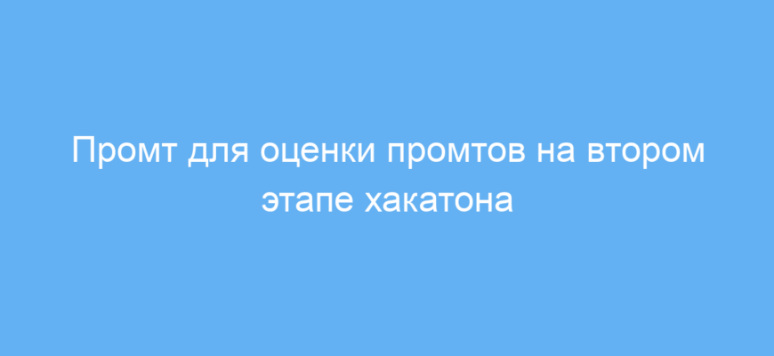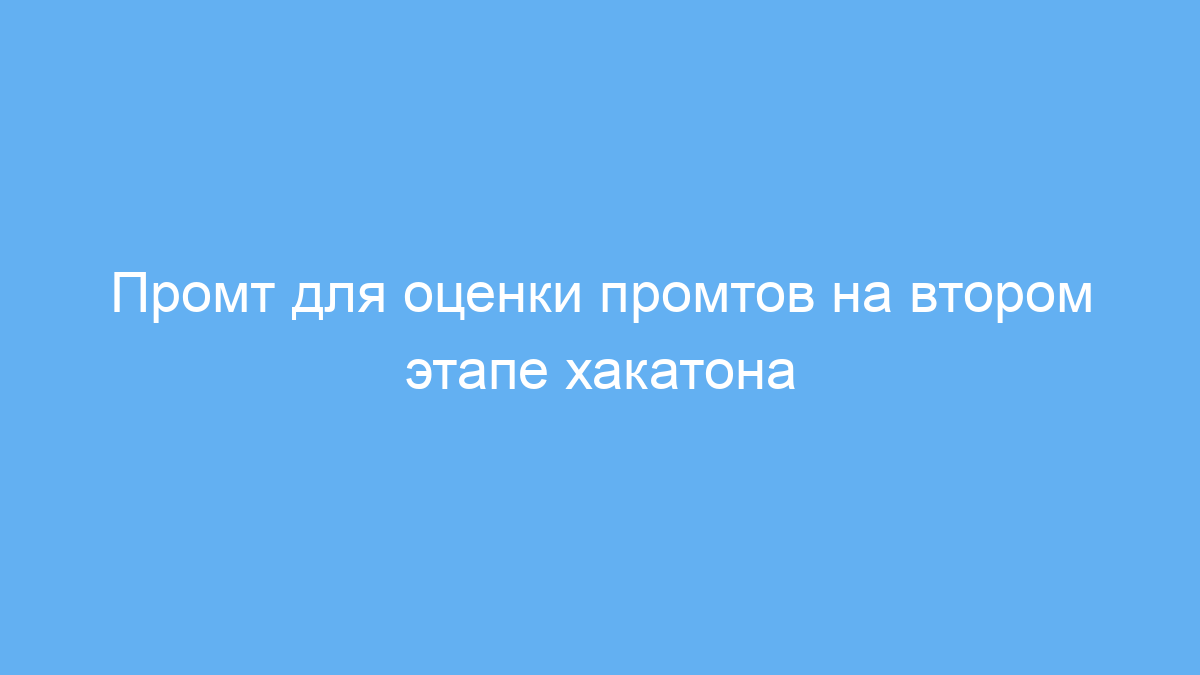 Этот промт предназначен для участников второго этапа хакатона, а также для всех, кто хочет получить объективную оценку своих промтов (запросов) для нейросетей. Он помогает оценивать качество и эффективность промтов по нескольким ключевым критериям, таким как актуальность, логичность и креативность.