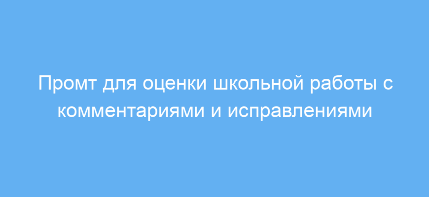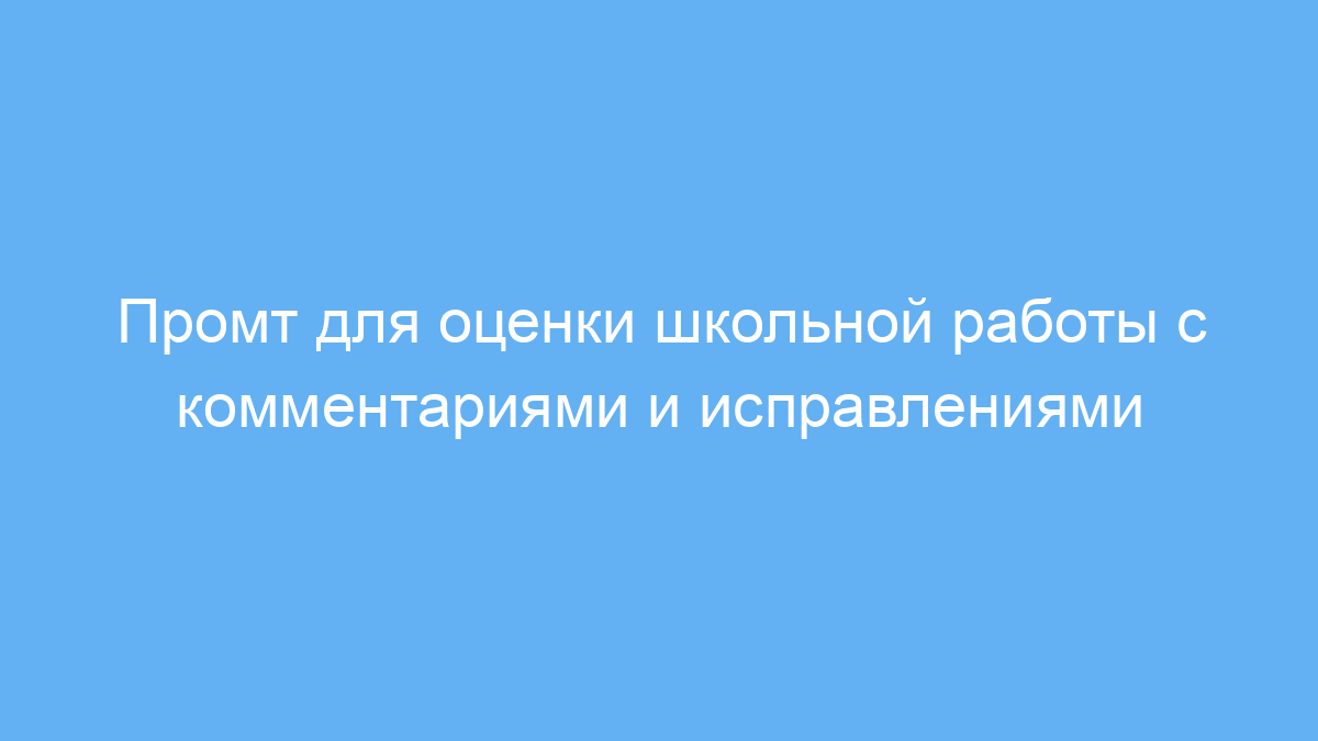 Промт решает несколько важных задач: позволяет учащимся понять, насколько хороша их работа, выявить слабые места и получить советы для повышения оценки. Это особенно полезно при подготовке домашних заданий, эссе или контрольных работ. Использовать промт просто — достаточно вставить нужные данные (уровень, предмет, название работы и сам текст работы) и получить структурированный и понятный ответ.