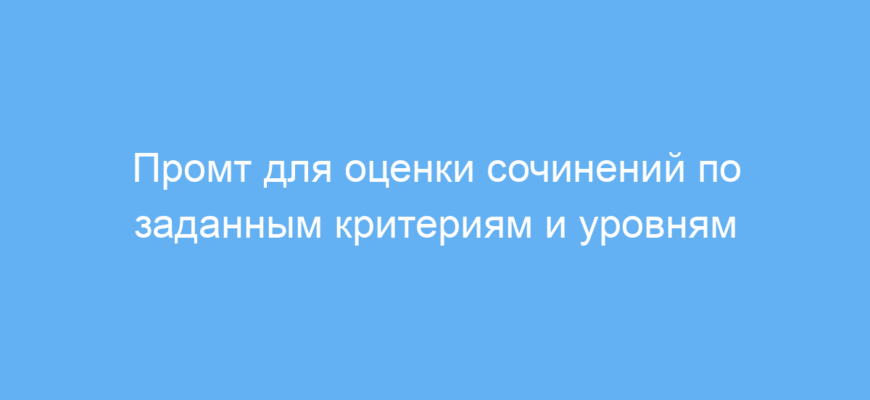 Промт работает так: пользователь задаёт критерии оценки (что важно учитывать в сочинении), уровни компетентности (например, начинающий, средний, продвинутый) и уровень обучения ученика. Также необходимо вставить текст сочинения. На основе этих данных нейросеть анализирует работу и выдаёт оценку согласно заданным параметрам. Текст сочинения в ответе не повторяется, что удобно для конфиденциальности и упрощения восприятия.