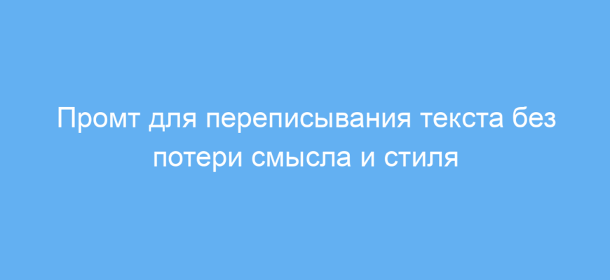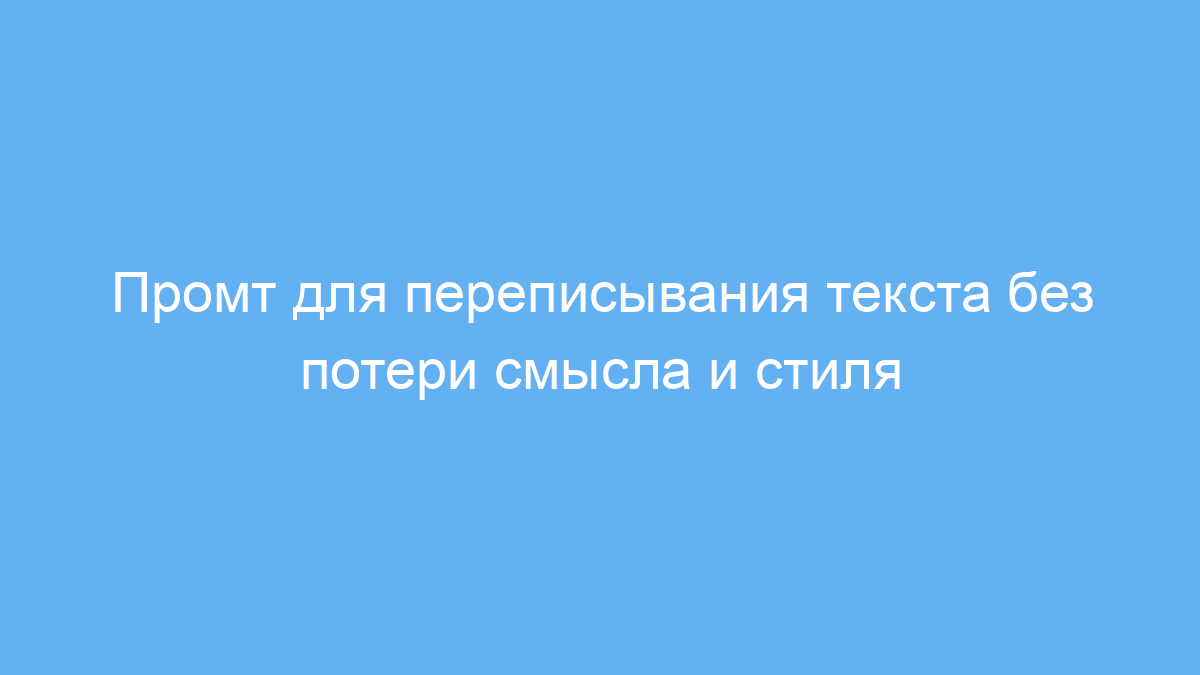 Данный промт предназначен для тех, кто хочет переписать текст, сохранив оригинальный стиль, объем, форму и понятность. Он помогает избежать плагиата, перефразируя каждую идею точно и полно. Такой инструмент полезен копирайтерам, студентам, авторам и всем, кто работает с текстами и нуждается в качественной адаптации материала.