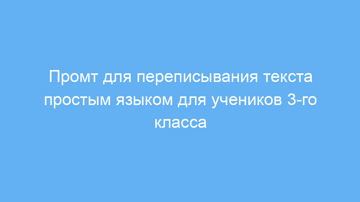 Этот промт создан для тех, кто хочет упростить сложные тексты и сделать их понятными для детей 9–10 лет, учащихся 3-го класса. Он помогает педагогам, родителям, репетиторам и авторам учебных материалов быстро адаптировать длинные или трудные тексты под детский уровень восприятия. Такой подход облегчает обучение и делает информацию доступной.
