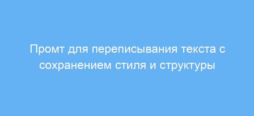 Использование этого промта значительно облегчает задачу создания уникальных текстов с сохранением оригинального стиля и содержания. Это экономит время на переписывание и оформление, а также помогает избежать проблем с плагиатом.