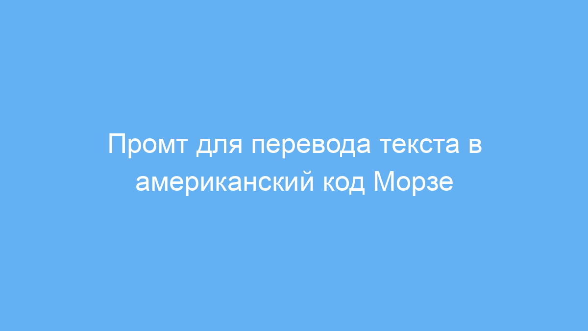 Этот промт предназначен для тех, кто хочет быстро и удобно перевести текст в американский код Морзе. Он особенно полезен в обучении, изучении сигналов, радиообмене и для любителей шифров. Промт решает задачу автоматизации перевода без необходимости помнить таблицу кодов или использовать сложные программы.