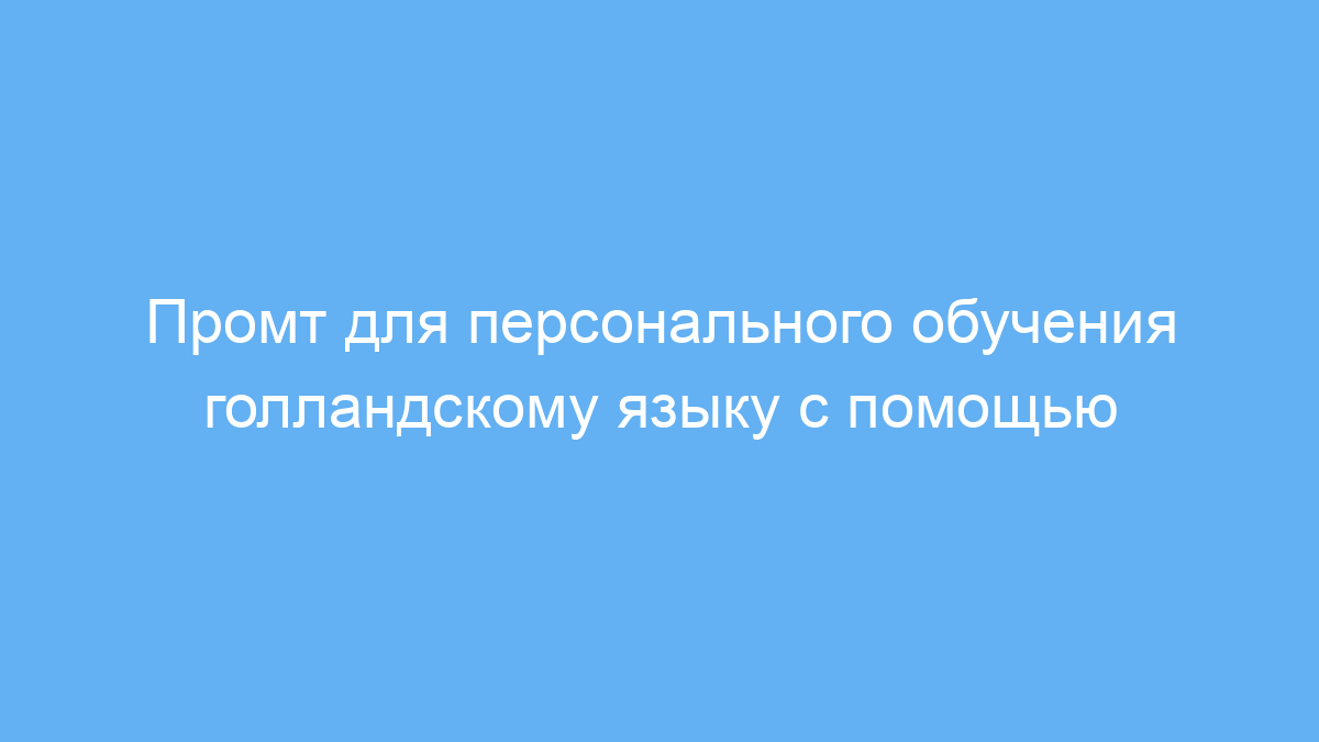 Промт решает несколько важных задач: помогает выучить грамматику, лексику и правильное произношение; поддерживает разговорную практику в формате ролевых игр; переводит тексты с родного языка на голландский и наоборот; а также предлагает культурные и литературные материалы для расширения кругозора. Такой комплексный подход экономит время и делает обучение более осмысленным и структурированным.