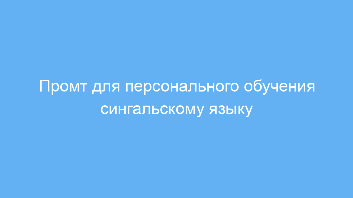 Этот промт предназначен для всех, кто хочет изучить сингальский язык, будь то начинающие или продвинутые ученики. Он поможет быстро и удобно осваивать язык, повышать разговорные навыки, разбирать грамматику и даже работать с переводами. С помощью промта можно решать задачи самообразования, подготовиться к экзаменам, расширить словарный запас или улучшить понимание культуры сингальского языка.