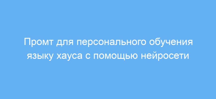 Промт решает проблему отсутствия персонального преподавателя языка хауса. Он обеспечивает удобное взаимодействие с ИИ, который подстраивается под уровень и цели пользователя. Для работы достаточно выбрать базовый язык обучения (например, английский или французский) и тему изучения, после чего нейросеть ведет урок, отвечая на вопросы и предлагая упражнения.