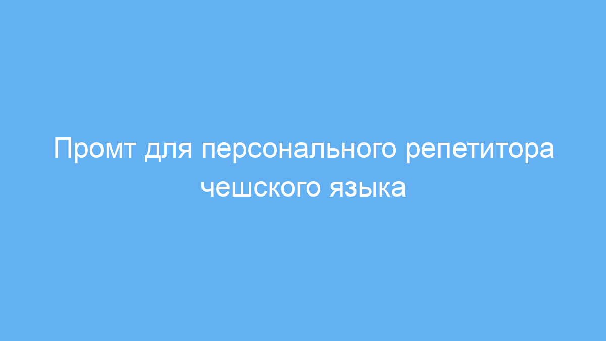 Этот промт создан для тех, кто хочет эффективно изучать чешский язык с помощью нейросети. Он помогает ученикам любого уровня — от новичков до продвинутых — получить персонализированную помощь в изучении грамматики, лексики, произношения и практических навыков языка. Используя этот промт, вы можете выбрать базовый язык обучения и получать уроки, адаптированные под ваши задачи.