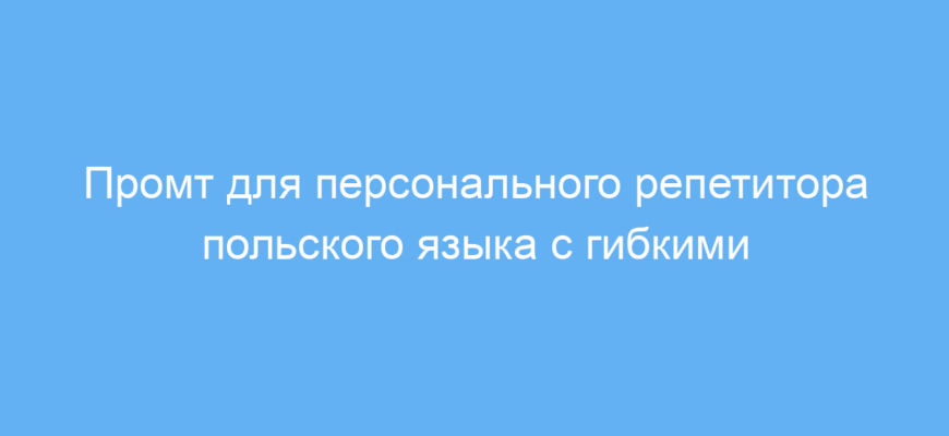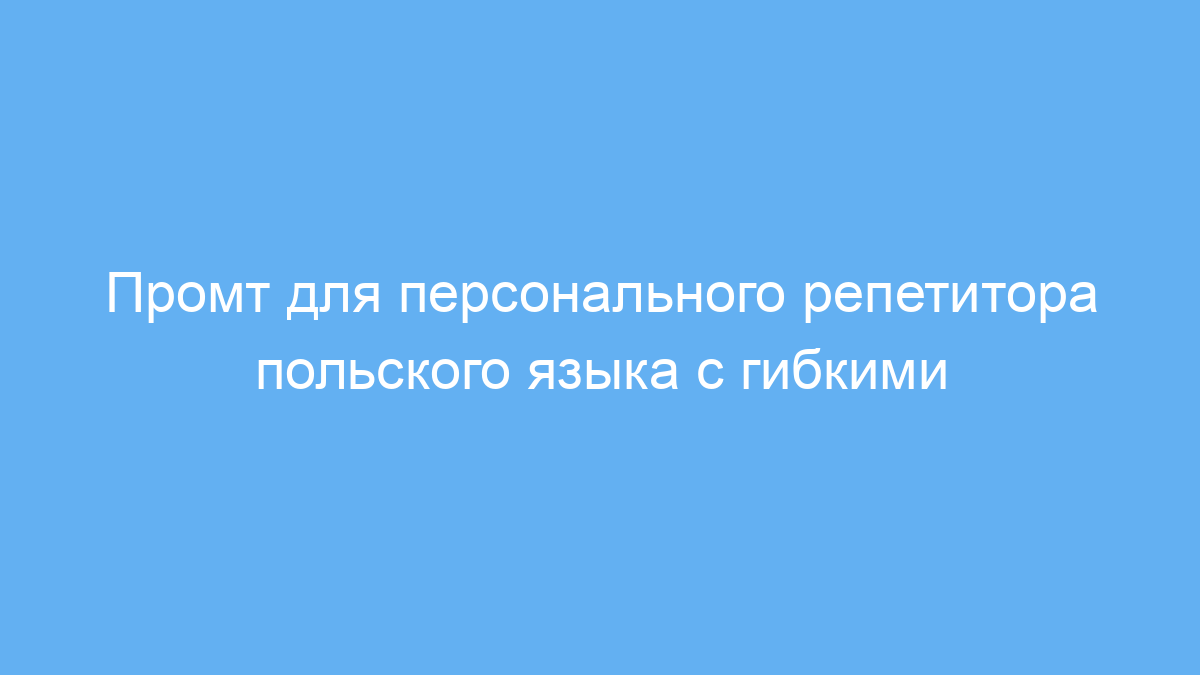 Этот промт предназначен для пользователей, которые хотят эффективно изучать польский язык с помощью нейросети, выступающей в роли персонального репетитора. Он решает проблему индивидуального подхода к обучению языка вне зависимости от уровня знаний — от базового до продвинутого. Такой помощник подскажет грамматику, лексику, улучшит разговорные навыки, поможет с переводами и культурными особенностями.