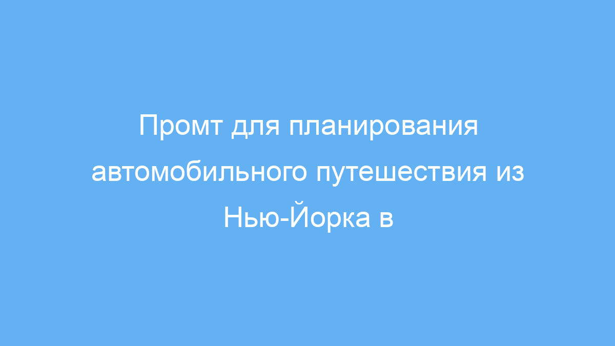 - Используйте промт, когда планируете автопутешествие и хотите получить полный, структурированный маршрут с полезной информацией.