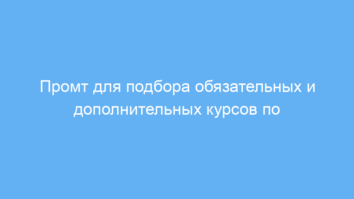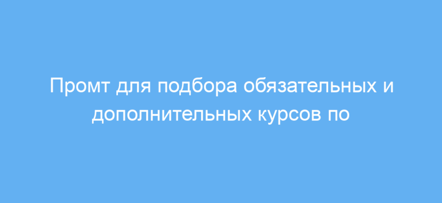Этот промт предназначен для студентов и специалистов, которые хотят быстро и удобно подобрать важные образовательные курсы по своей специальности. Он помогает не только определить обязательные дисциплины, но и рекомендует полезные дополнительные курсы, учитывая личные интересы и цели.
