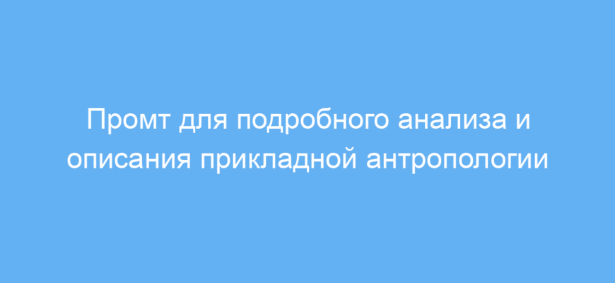 Использование данного промта позволяет быстро получать качественную и разностороннюю информацию об прикладной антропологии, с акцентом на практические кейсы и этические аспекты. Это экономит время на поиске, структурирует знания и помогает создавать экспертный контент.