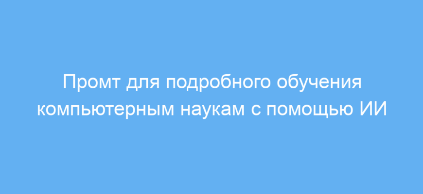 Использование данного промта позволяет организовать изучение компьютерных наук простым и структурированным образом. Вместо разбросанной информации и хаотичных попыток разобраться — вы получите четкую дорожную карту и поэтапное обучение, адаптированное под ваш уровень знаний с возможностью задавать вопросы на каждом этапе.