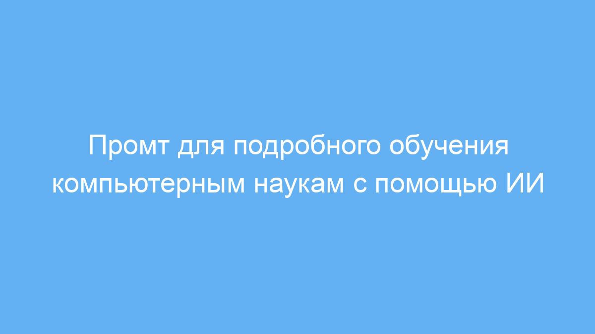 Этот промт создан для тех, кто хочет последовательно и глубоко изучать любую тему из области компьютерных наук. Он идеален для студентов, программистов-новичков и всех, кто хочет получить четкую и структурированную дорожную карту по выбранной теме и получить обучение, подобранное под уровень знаний.