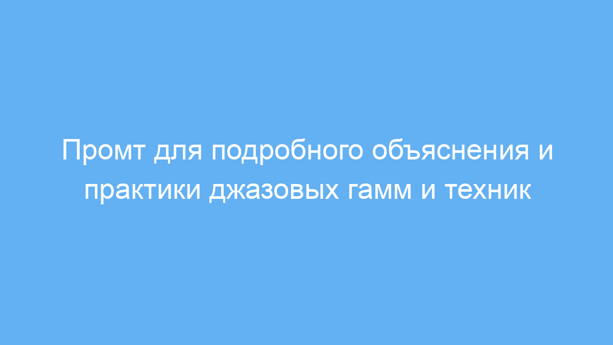 Этот промт значительно облегчает изучение и освоение сложных джазовых гамм и техник сольного исполнения. Он позволяет получить структурированные объяснения, рекомендованные упражнения и практические примеры с нотами, что экономит время и повышает эффективность обучения. Особенно полезен для музыкантов, стремящихся углубить знания и улучшить навыки импровизации.