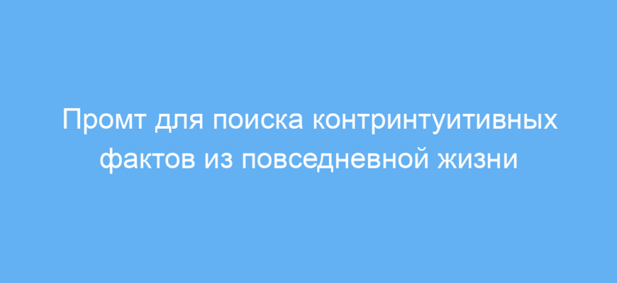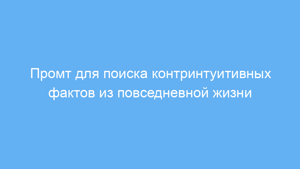 Этот промт создан для пользователей, которым интересны удивительные и неожиданные факты, противоречащие привычным представлениям. Он поможет легко находить и объяснять такие контринтуитивные явления из повседневной жизни. Такой инструмент будет полезен как студентам и преподавателям, так и авторам контента, журналистам и всем, кто любит углубляться в необычные стороны обычных вещей.