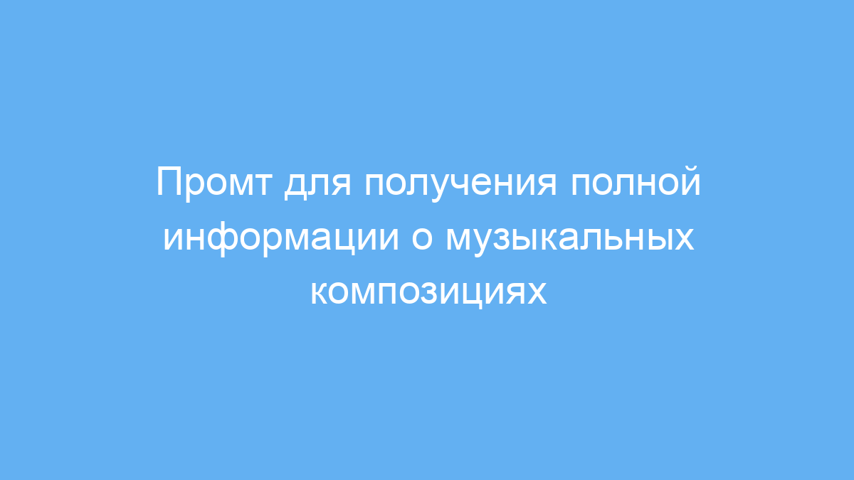 Этот промт создан для тех, кто хочет быстро и точно получать развернутую информацию о музыкальных композициях, их создателях, исполнителях и других участниках производства. Его могут использовать музыканты, исследователи, студенты музыкальных факультетов, журналисты и просто любители музыки, которым важно знать подробности о треках.