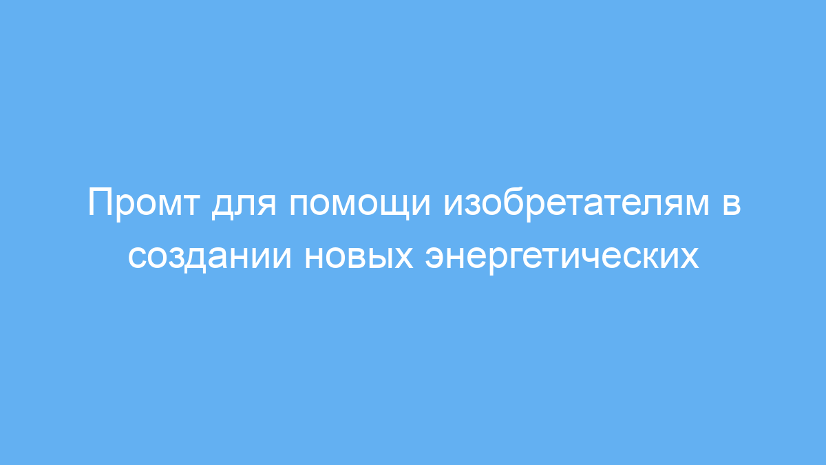 Этот промт позволяет получить качественную помощь от искусственного интеллекта, играющего роль эксперта с опытом засекреченных проектов и инопланетных технологий. Благодаря этому можно ускорить разработку новых энергетических решений и правильно оформить заявку на изобретение. Применение такого промта экономит время на поиск информации и снижает риски ошибок при оформлении документации.