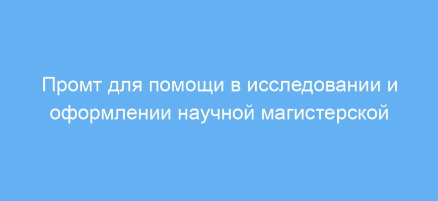 Промт помогает студентам структурировать процесс работы над дипломной или магистерской диссертацией. Он облегчает поиск исследовательских вопросов, предложение методик, оформление заявки и её улучшение, что значительно экономит время и повышает качество научного текста. В основе работы лежит чёткий параметрический запрос с подробным описанием задач.