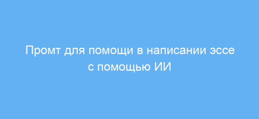 Данный промт позволяет структурировать процесс написания эссе, избежать хаотичности и улучшить качество работы без написания текста за вас. Вы получаете четкое руководство и полезные советы, которые экономят время и делают эссе более логичным и убедительным.