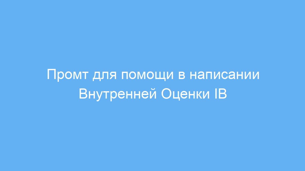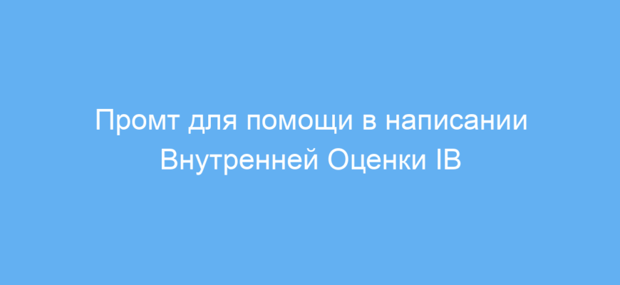 Этот промт предназначен для учеников Международного Бакалавриата (IB), которым требуется помощь с написанием Внутренней Оценки (Internal Assessment, IA). Он полезен учащимся разных предметных областей — естественных наук, математики, литературы, общественных наук и искусства. Промт помогает структурировать работу, выбрать правильные исследовательские вопросы и соблюдать академическую честность, что часто вызывает трудности у учеников.