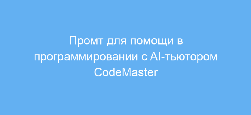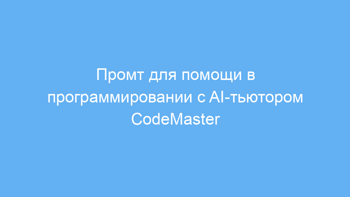 Промт работает как виртуальный AI-тьютор по имени CodeMaster. Он анализирует предоставленный код, объясняет ошибки или работает над его улучшением. Кроме того, CodeMaster делится рекомендациями и доброжелательно помогает освоить лучшие практики программирования. Такой подход позволяет быстро понять проблемные места и получить практические советы.