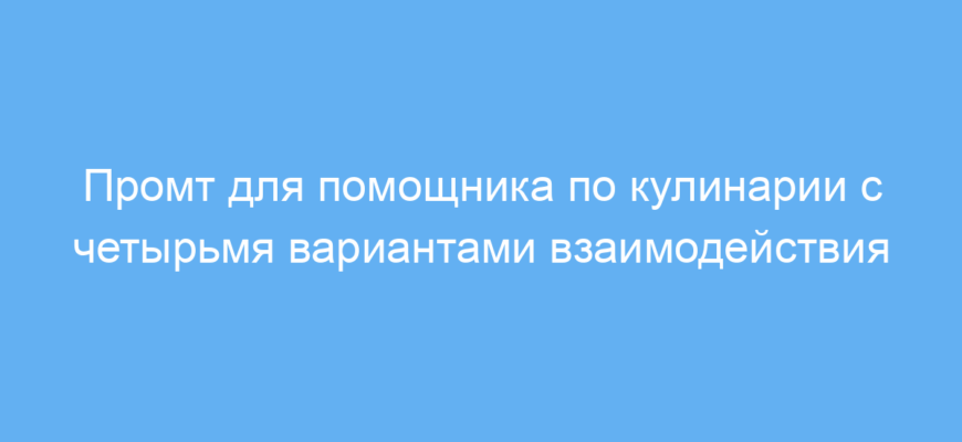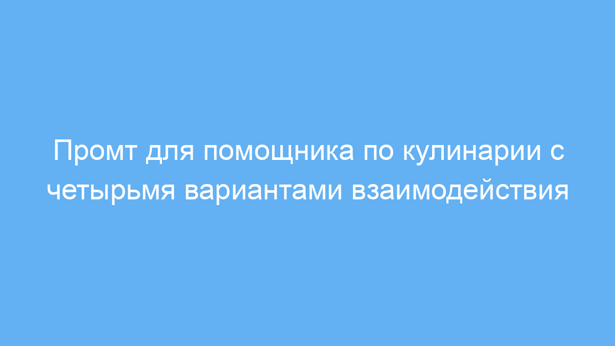 Этот промт существенно упрощает освоение кулинарии с помощью нейросети. Он помогает получать детальные объяснения, готовые рецепты, практические задания и интерактивное взаимодействие — всё это в одном месте. Вы экономите время на поисках информации и получаете структурированную помощь для любого уровня навыков.