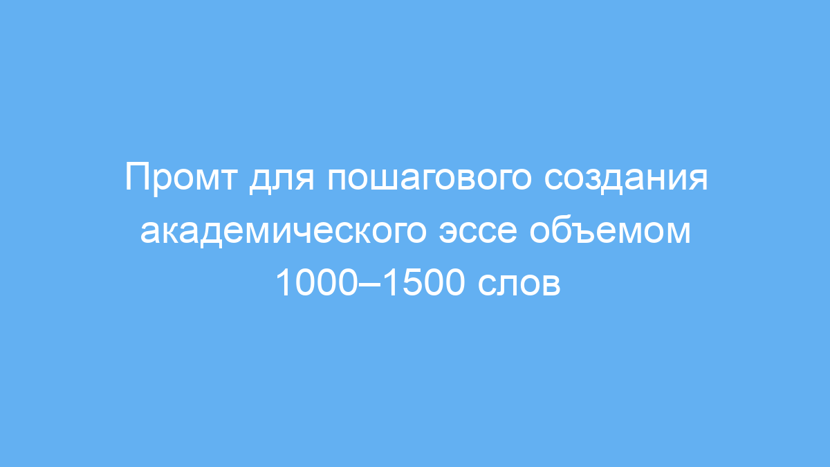 Данный промт поможет написанию академических эссе стать структурированным, логичным и аргументированным процессом. Он избавляет от хаоса и беготни между этапами, поддерживает пользователя на каждом шаге и экономит время, делая подготовку научных текстов проще и эффективнее.