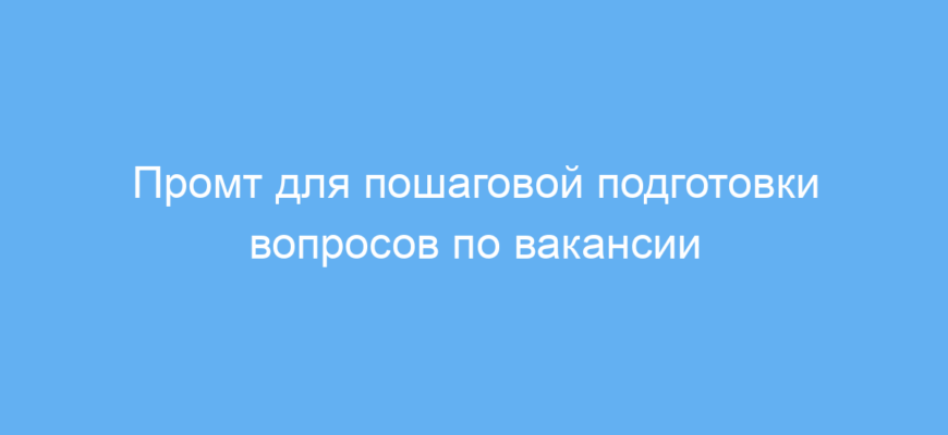 Этот промт удобно использовать для подготовки квалифицированных вопросов по вакансии. Он помогает быстро получить структурированные и подходящие вопросы для HR или технических интервью, что существенно упрощает и ускоряет подготовку к собеседованию или подбору персонала.