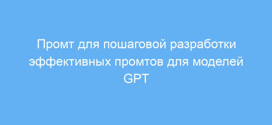 Промт описывает понятный процесс: сначала вы формулируете, какую задачу должен решить промт, затем проектируете его структуру, пишете текст, тестируете и, после успешной проверки, внедряете. Важно также регулярно обновлять промт, учитывая отзывы и новые данные. Такой подход позволяет создавать удобные и функциональные инструменты для работы с моделями GPT, улучшая качество ответов и экономя время.