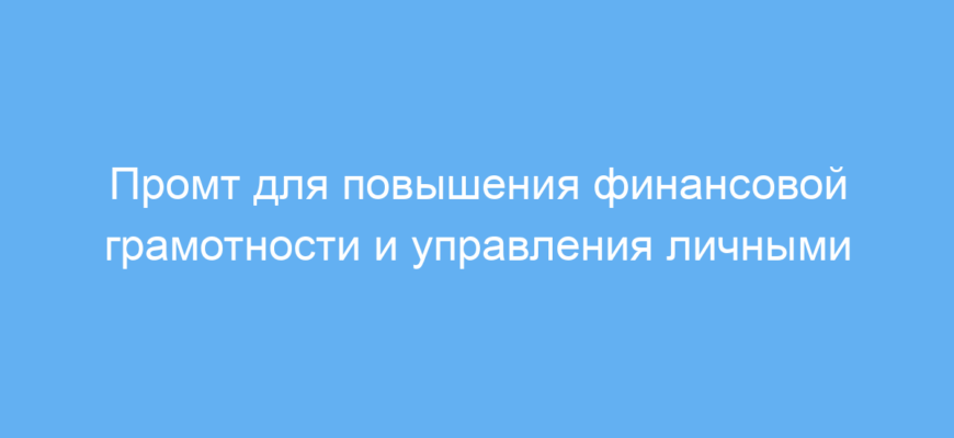 Промт работает следующим образом: пользователь формулирует запрос о желании повысить финансовую грамотность и получить практические советы. Нейронная сеть анализирует запрос, затем генерирует подробный план действий, учитывая ключевые темы: бюджетирование, сбережения, инвестиции и минимизацию долгов. В итоге получается понятное руководство, применимое к реальной жизни.
