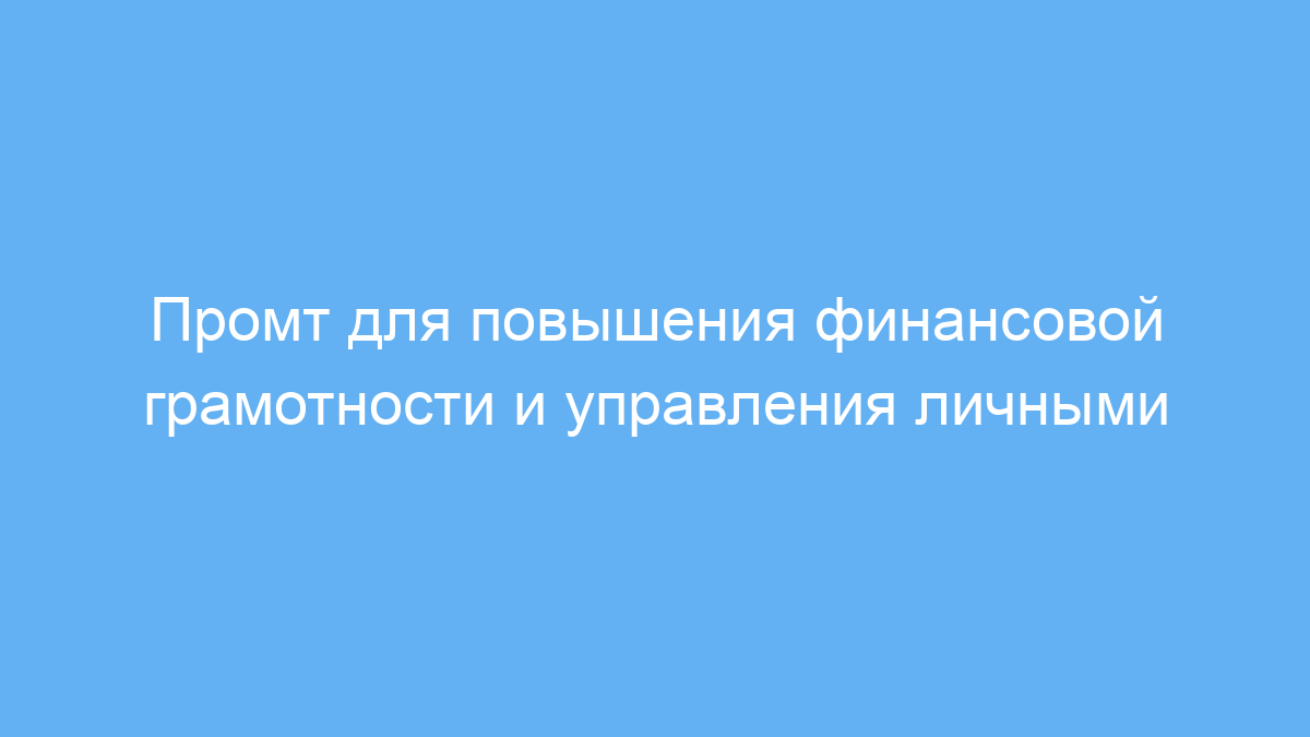 Этот промт предназначен для тех, кто хочет улучшить свои знания в области финансов и научиться эффективно управлять личными средствами. Он помогает решить задачи по бюджетированию, накоплению сбережений, инвестированию и снижению долговой нагрузки. Используя этот промт, пользователи получают структурированные рекомендации и конкретные шаги, которые помогают построить надежную финансовую базу.