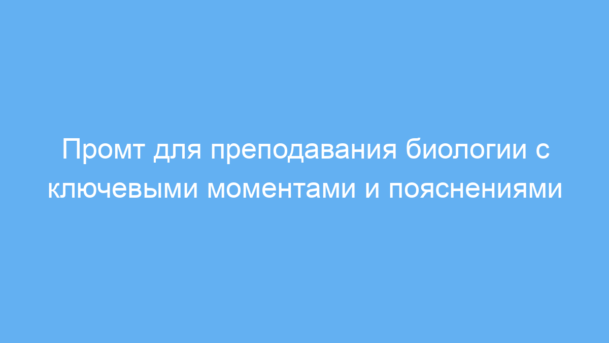 Этот промт идеально подходит для учителей, преподавателей и студентов биологии, которые хотят быстро составить структурированный список важных тем и ключевых моментов по любой биологической теме. Он помогает ускорить подготовку к занятиям и улучшить качество изучения, так как позволяет создавать подробные планы материала с пояснениями. Благодаря промту можно избежать распространённых ошибок и непониманий, то есть сделать процесс обучения более эффективным и точным.