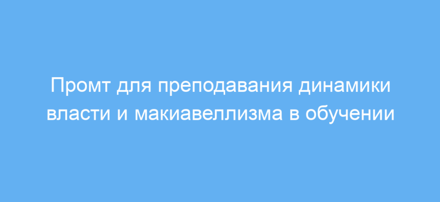 Использование этого промта позволяет создать структурированный и адаптивный образовательный процесс по сложным темам «Динамика власти» и «Макиавеллизм». Он помогает эффективно контролировать уровень понимания, быстро исправлять ошибки и расширять знания без перегрузки. В результате обучение становится более продуктивным и интерактивным, что экономит время и усилия как преподавателя, так и ученика.