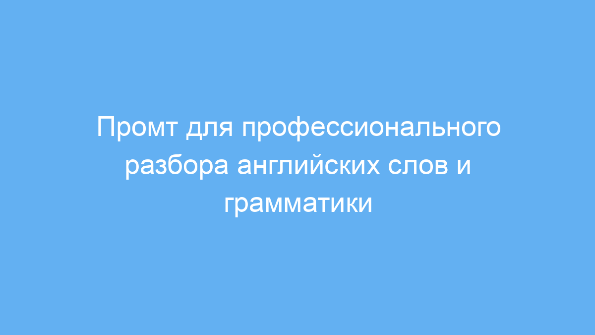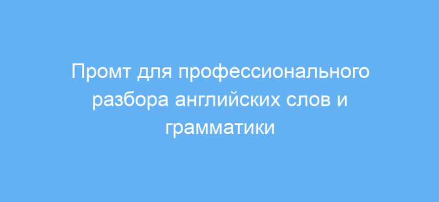 Использование этого промта позволяет быстро и удобно получить профессиональный разбор английских слов и грамматики. Он экономит время, структурирует знания и помогает создавать тексты, что будет полезно как студентам, так и специалистам, работающим с языком и текстами.
