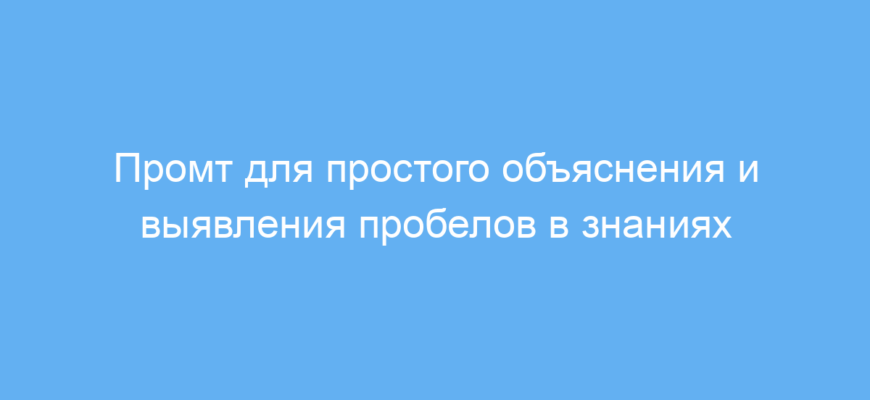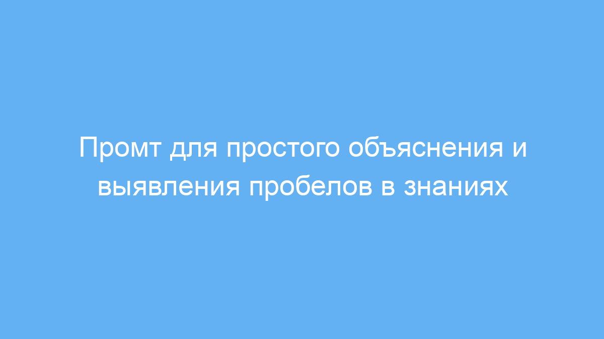 Этот промт создан для тех, кто хочет быстро и доступно понять сложные темы или концепции. Он помогает обучающимся, студентам, педагогам и тем, кто изучает новые области, объяснять информацию простым языком, чтобы легче усвоить материал. Еще одна важная функция промта — выявлять пробелы в знаниях пользователя и предлагать полезные ресурсы для их восполнения.