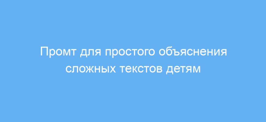- Промт хорошо работает с научными, техническими или учебными материалами, требующими адаптации языка для детей.