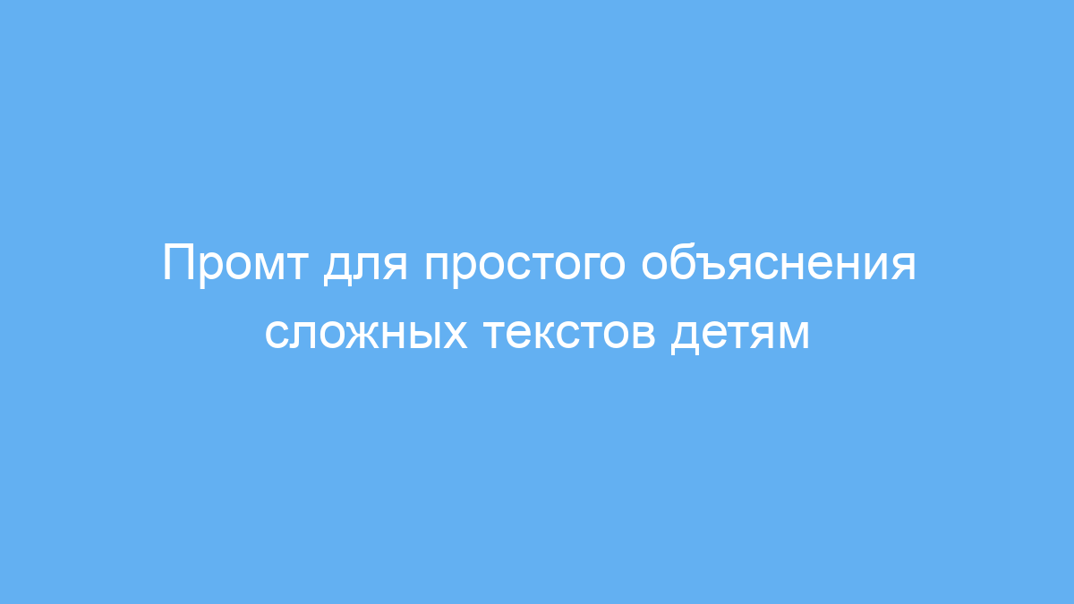 Этот промт создан для тех, кто хочет быстро и понятно объяснять сложные темы. Он поможет учителям, родителям и студентам делать информацию доступной для детей и новичков. Часто при изучении новых предметов или чтении научных текстов возникают трудности с пониманием. Такой промт упрощает объяснение, делая его похожим на рассказ для 11-летнего ребенка.