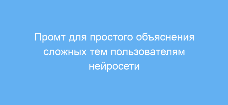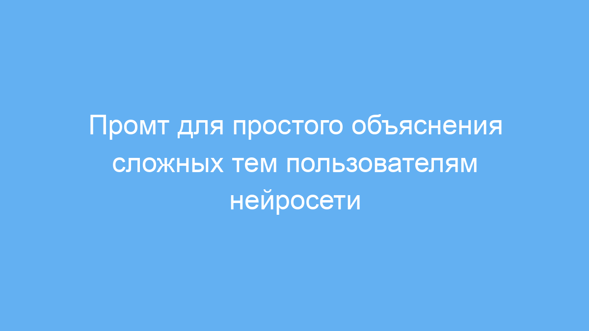 Этот промт создан для тех, кто хочет получать от нейросети простые и понятные объяснения даже самых сложных тем. Он будет полезен учителям, студентам, контент-мейкерам и всем, кто хочет донести информацию доступным языком. Благодаря этому промту нейросеть объясняет материал с ясной структурой, использует заголовки и выделения, а также обращается к пользователю дружелюбно и человечно.