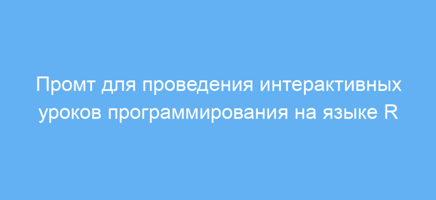 Этот промт позволяет структурировано и последовательно изучать язык программирования R, превращая процесс образовательного диалога в интерактивное взаимодействие. Он экономит время на поиски учебных материалов, помогает лучше усваивать темы с практикой и обратной связью.