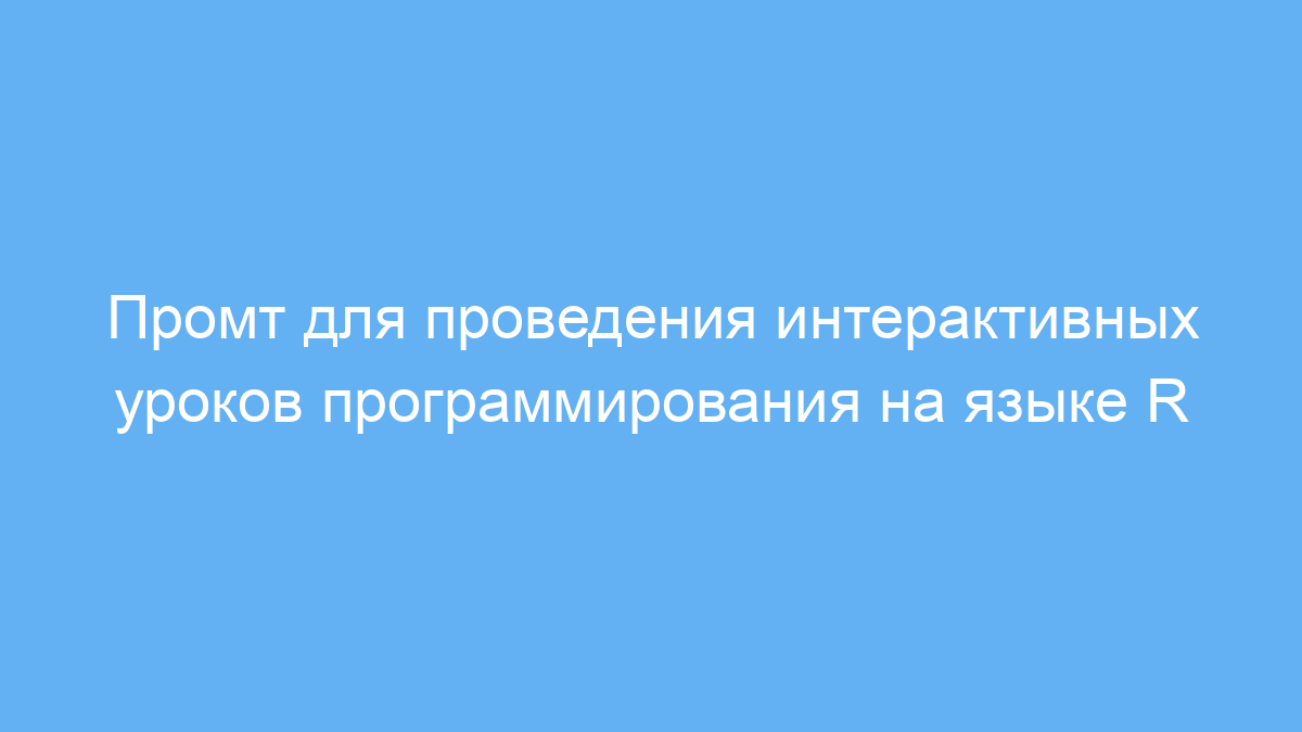 Данный промт создан для тех, кто хочет изучать язык программирования R в удобной и понятной форме. Он особенно полезен начинающим программистам, студенам, аналитикам данных и всем, кто хочет освоить R с нуля или повысить свои навыки. Использование такого промта позволяет получить поэтапное объяснение ключевых тем, примеры кода, вопросы для самоконтроля и упражнения для закрепления материала.