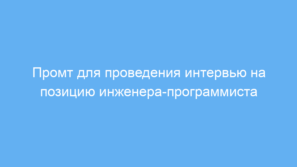 Этот промт предназначен для HR-специалистов, рекрутеров и руководителей, которые проводят собеседования на стажировку или работу инженера-программиста. Он помогает автоматизировать процесс интервью, делая его максимально приближённым к реальному собеседованию. С его помощью можно проверить знания и навыки кандидатов, структурировано задавая вопросы один за другим.