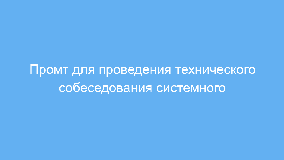 Промт значительно упрощает и ускоряет процесс технического собеседования системного администратора, помогает структурировать вопросы и объективно оценить уровень кандидата без лишней нагрузки на интервьюера.