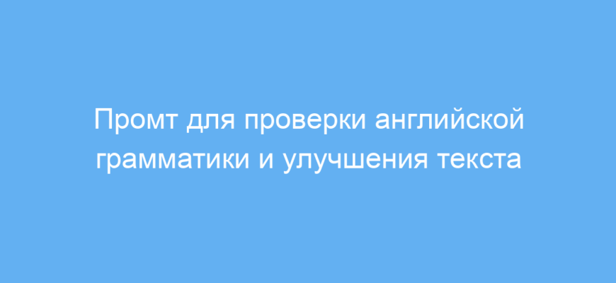 Используя этот промт, вы экономите время на поиски грамматических ошибок и улучшаете качество текста. Он помогает сделать английскую речь правильной и стильной, что важно как в учёбе, так и в профессиональной деятельности.