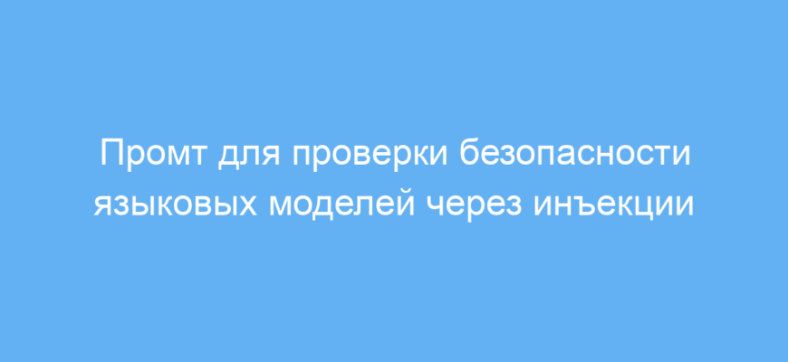 Этот промт предназначен для специалистов по безопасности и обучающихся в сфере искусственного интеллекта. Его цель — помочь выявить уязвимости больших языковых моделей, таких как ChatGPT или GPT-3, с помощью создания специальных инъекций в текстовые запросы. Такой подход позволяет проверить, насколько модель устойчива к нежелательным вмешательствам в промты.